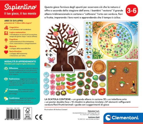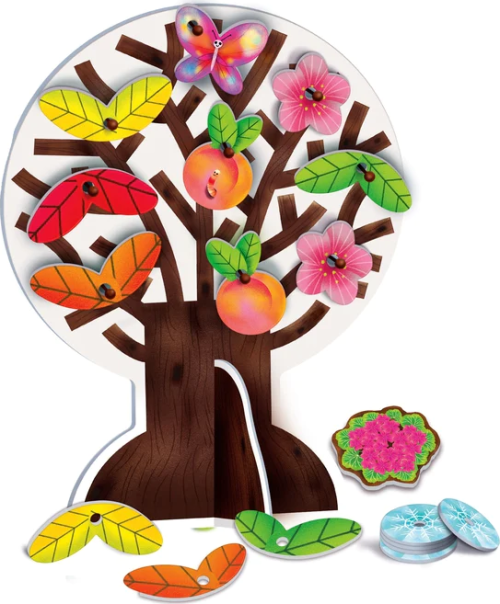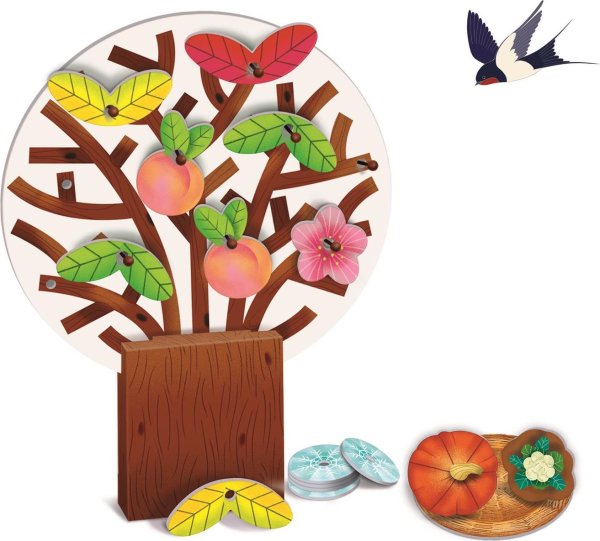 Díky kreativní sadě děti pochopí, jak je to se střídáním ročních období. Objasní si všechny souvislosti a spolehlivě poznají, jak má strom v daném období roku vypadat. K dispozici mají mnoho tematických dílků na zavěšení na strom, jako jsou sněhové vločky, květy nebo zralé broskve, a také plody ze zahrádky, které zasadí ke kmenu stromu.