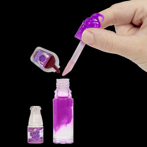 Vyrob si svůj vlastní lesk na rty s roztomilou panenkou. 1. Otevři tubu s leskem na rty. 2. Přidej do tuby vůni z lahvičky na limonádu. 3. Přidej barvu z kelímku na Bubble tea. 4. Tubu s leskem zavři a pořádně ji protřepej. V sérii můžeš vybírat z 6 vůní a vytvořit více než 50 kombinací. Roztomilá voňavá panenka má outfit a boty, které můžeš sundat. Panenku i lesk na rty si můžeš vzít na cesty, stačí spojit s přívěskem na klíče. Velikost panenky cca 10 cm.