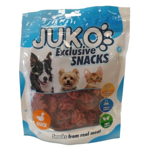 Složení: kachna 85,4 %, škrob 5 %, sorbitol 3 %, glycerin 3 %, rostlinný protein 3 %, sůl 0,5 %, sorban draselný 0,1 %.