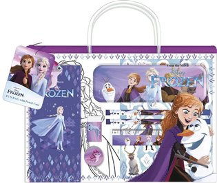 Set obsahuje kovový penál, 6 listů k malování, 2 listy se samolepkami, 2 tužky, blok, pravítko, ořezávátko a gumu, to vše v praktické uzavíratelné taštičce.