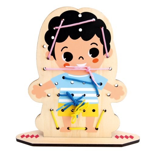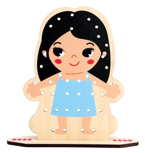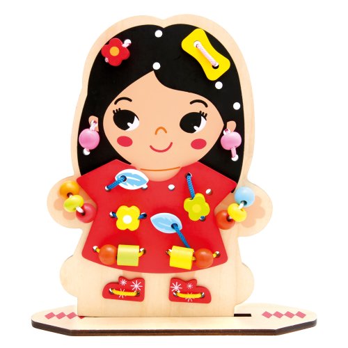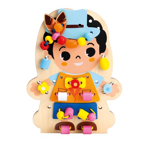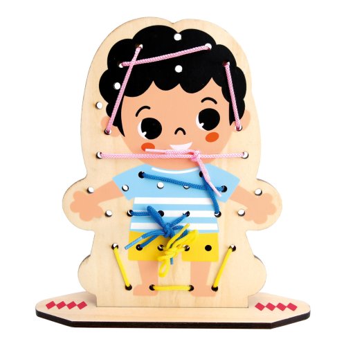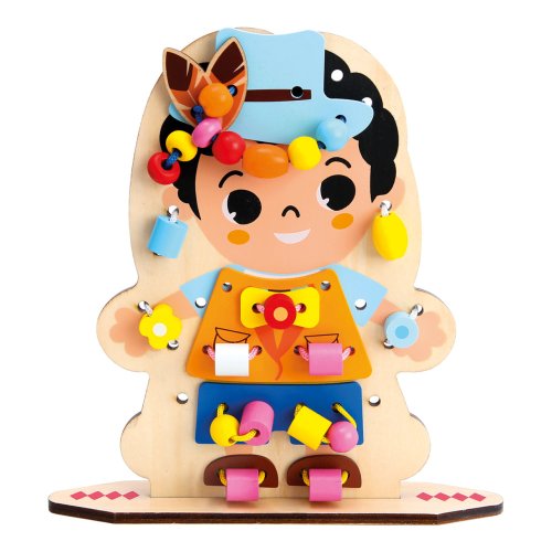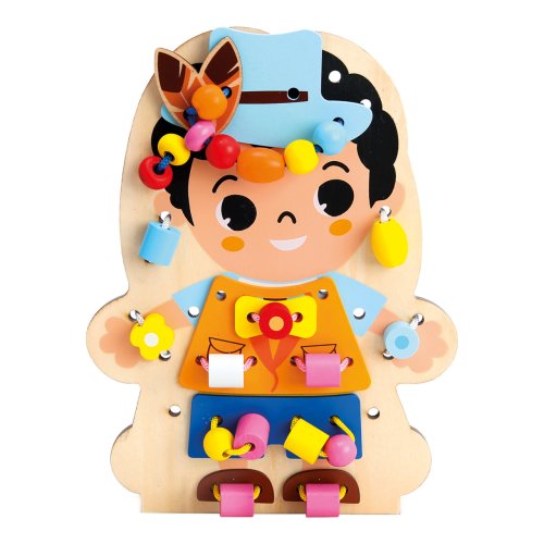 Malé děti stráví nekonečné hodiny krásným oblékáním holčičky nebo chlapečka (oboustranně potištěná deska na navlékání). Tato roztomilá hra s navlékáním je tak bohatá na doplňky, že se děti mohou pořádně odvázat. Při hraní této jedinečné a zajímavé hry s nitěmi si děti zlepšují jemnou motoriku, koordinaci rukou a očí, kognitivní myšlení, vizuální vnímání, řešení problémů, trpělivost a soustředění. Je to zábavný způsob, jak se děti mohou učit při hře. Je to klasická hračka na navlékání, kterou si
