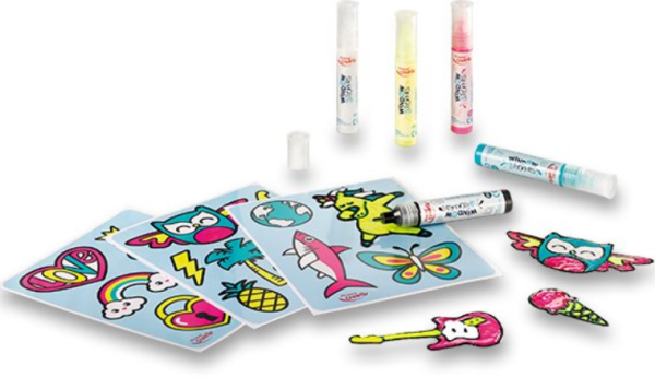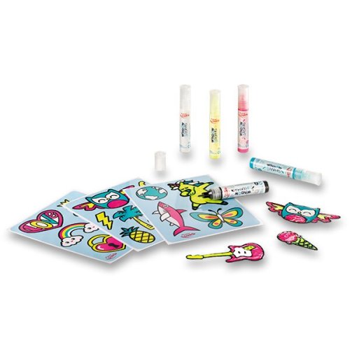 Sada obsahuje:, * 30 obrázkových zalaminovaných šablon, * 5 tub s barvou (tyrkysová, fluo žlutá, růžová, bílá, černá)