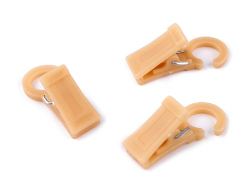 Žabky využijete na záclony. Díky materiálu, ze kterého jsou vyrobené, mají nízkou hmotnost. Háček pohodlně zavěsíte na garnýže. [Žabky mají na koncích zoubky.]