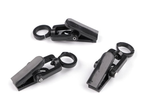 Žabky k uchycení záclon mají na koncích zoubky, díky kterým dobře drží. Jsou z plastu, takže jsou lehké. Očka na žabkách jsou otočná.