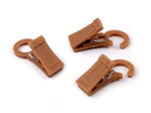 Žabky využijete na záclony. Díky materiálu, ze kterého jsou vyrobené, mají nízkou hmotnost. Háček pohodlně zavěsíte na garnýže. [Žabky mají na koncích zoubky.]