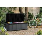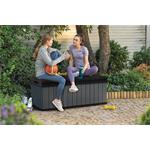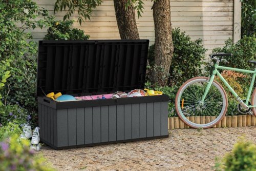 Najděte pro box ideální místo na zahradě. Díky struktuře, která připomíná dřevo, zapadne do každého prostředí. Uložené věci navíc můžete uzamknout uvnitř boxu. Hydraulický pístový systém zajistí plynulé a bezpečné zavírání a otevírání víka. Po zavření se na něj navíc usadí až 2 lidi.