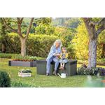Najděte pro box ideální místo na zahradě. Díky struktuře, která připomíná dřevo, zapadne do každého prostředí. Uložené věci navíc můžete uzamknout uvnitř boxu. Hydraulický pístový systém zajistí plynulé a bezpečné zavírání a otevírání víka. Po zavření se na něj navíc usadí až 2 lidi.
