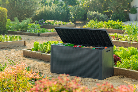 Nemáte dostatek úložného prostoru pro věci na vaší zahradě, terase nebo v pergole? Povaluje se vám nářadí, polštáře ze zahradního nábytku nebo dětské hračky všude kolem? Zahradní box Keter Emily v grafitové barvě vyřeší váš problém. Potěší svým jednoduchým a nenápadným vzhledem, který připomíná dřevěnou či ratanovou truhlu, a díky neutrální barvě se bude hodit téměř do jakéhokoliv exteriéru i interiéru.