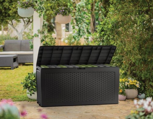 Grafitový zahradní box Keter Samoa Rattan nabízí kapacitu 270 l, takže poslouží jako perfektní úložný prostor pro polštáře a ostatní doplňky vaší zahrady, terasy či pergoly. Zabudovaný podlahový panel chrání obsah skříně proti vodě, bahnu, prachu a dalším nečistotám. Složení skříně zvládnete během krátké chvíle a to bez použití jakéhokoliv nářadí. Box má vestavěná kolečka pro snadný přenos a jednoduchá je i údržba této skříně, jelikož vám stačí hadřík s vodou a pár krátkých chvil.