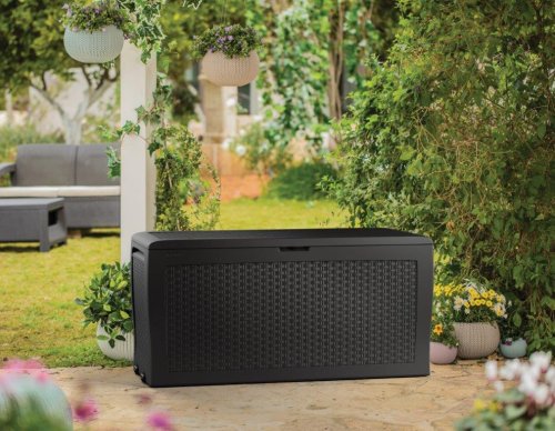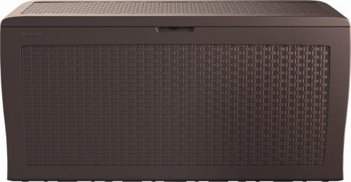Hnědý zahradní box Keter Samoa Rattan nabízí kapacitu 270 l, takže poslouží jako perfektní úložný prostor pro polštáře a ostatní doplňky vaší zahrady, terasy či pergoly. Zabudovaný podlahový panel chrání obsah skříně proti vodě, bahnu, prachu a dalším nečistotám. Složení skříně zvládnete během krátké chvíle a to bez použití jakéhokoliv nářadí. Box má vestavěná kolečka pro snadný přenos a jednoduchá je i údržba této skříně, jelikož vám stačí hadřík s vodou a pár krátkých chvil.