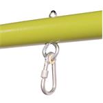 - stabilní konstrukce z ocelových trubek s kovovými oky pro zavěšení houpaček