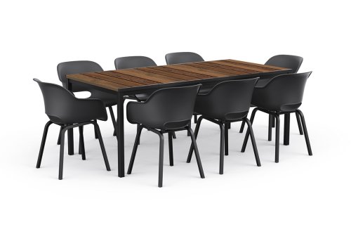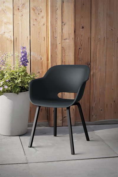 Zaoblené hrany a ergonomické provedení nejen vytváří elegantní design židle, ale zároveň vám zajistí pohodlí. Kovové nohy poskytují stabilitu. Navíc ji můžete nechat venku. Odolá totiž povětrnostním vlivům. Montáž židle je jednoduchá.