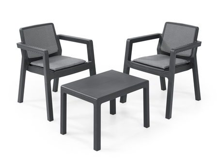 Grafitovou sadu si prostě zamilujete. Dvě křesílka a stolek ze stejné kolekce pozvednou look vaší terasy i dvorku. Sestavení je díky moderním technologiím velmi snadné, není potřeba žádné nářadí a vše zvládnete za 5 minut.