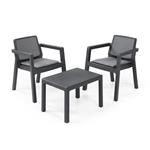 Balkónový set Emily značky Keter vás nadchne svým nevšedním designem a elegantní povrchovou úpravou v grafitové barvě. Konstrukce je přitom pevná a vydrží běžné zatížení venkovního provozu.