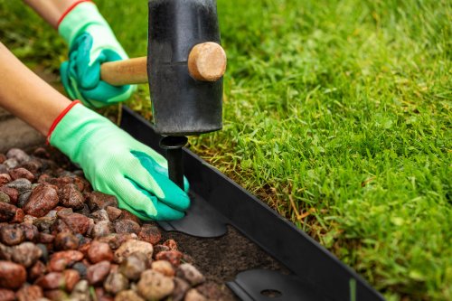 Vytvoření nového záhonu nebo plochy – rozložte obrubník do požadovaného tvaru, zasypte vnější a vnitřní stranu zvoleným materiálem (zemina, mulč, štěrk a podobně).