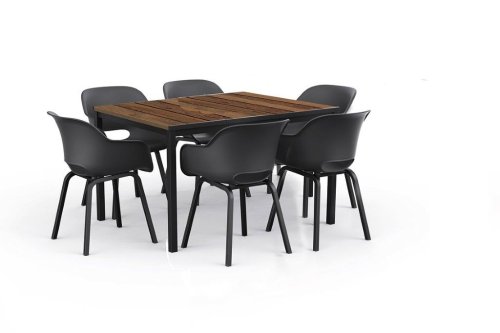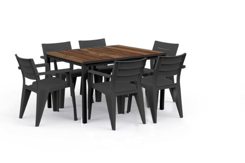 Díky unikátnímu povrchu DecoCoat odolá stůl nepříznivým povětrnostním vlivům a poškrábání. Zároveň si zachovává svou barvu. Textura navíc připomíná skutečné dřevo. Konstrukce je vyrobená z kovu, proto je stůl pevný a odolný.