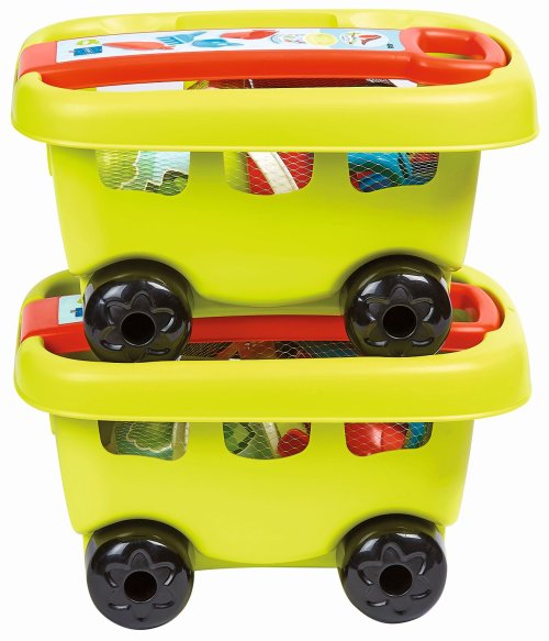 Ruční zahradní vozík s příslušenstvím v kyblíčku. S kyblíčkem na písek, sítem, konvičkou, lopatkou, hrabičkami a formičkou na písek. Vozík se snadno ovládá díky praktickému táhlu. Rozměry produktu (DxŠxV): 31 x 19 x 17,5 cm.