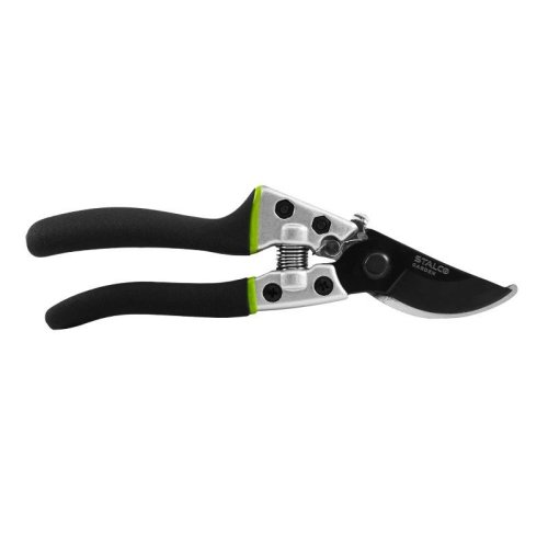 čepel z japonské oceli SK5 s vysokým obsahem uhlíku a teflonovým povlakem čepel (průchozí) na stříhání mladých výhonků a větví pohodlné hliníkové rukojeti bezpečnostní zámek