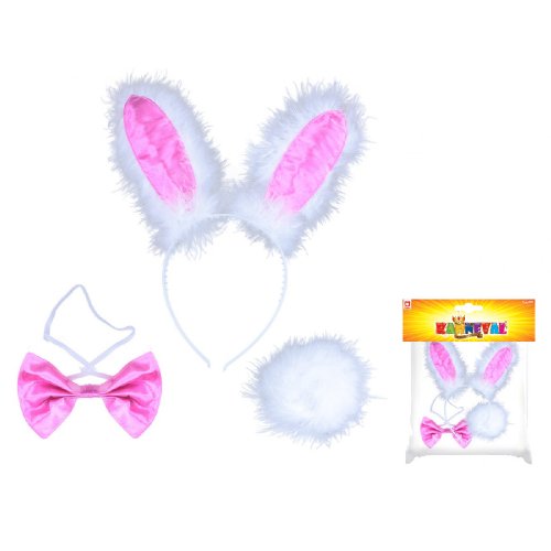 Exkluzivní karnevalová sada pro všechny zaječí holky! Set obsahuje zaječí uši na čelence, růžového motýlka na gumičku a připínací ocásek. Tyto super párty doplňky ti nesmí chybět!