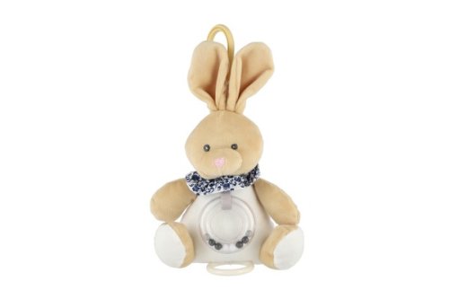 Roztomilý béžový natahovací zajíček hraje příjemnou melodii, která miminko uklidní a pomáhá mu při usínání. Hračku lze zavěsit za pomocí klipu na postýlku nebo kočárek. Hrací strojek je zabudovaný uvnitř zajíčka. Rozměr hračky: 18 cm Vhodné pro děti od narození