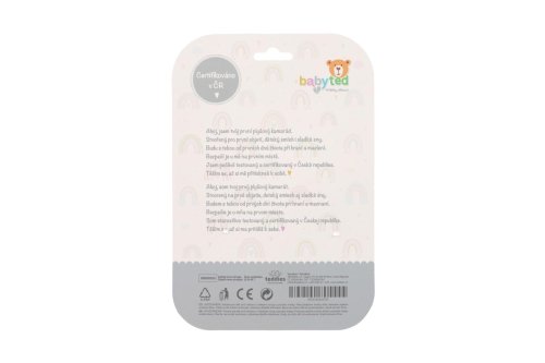 Roztomilý plyšový zajíček s natahovacím hracím strojkem je ideálním společníkem pro miminka již od narození. Stačí zatáhnout a hračka začne přehrávat uklidňující melodii, která pomáhá děťátku zklidnit se a snadněji usnout. Díky praktickému závěsnému klipu lze hračku snadno připevnit na kočárek, postýlku, autosedačku nebo hrazdičku. Miminko tak bude mít svého hebkého kamaráda vždy u sebe – doma i na cestách. Zajíček je vyroben z měkkého a příjemného plyše, který miminka přímo vybízí k mazlení. Jemné pastelové provedení a kontrastní vzory podporují vizuální vnímání malých dětí, má také jemně šustící uši. Hračka je certifikována v ČR, takže splňuje přísné bezpečnostní normy pro děti od 0 měsíců.