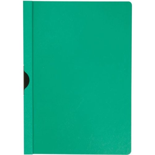 Desky spisové, materiál polypropylen Přední strana transparentní Kovový černý klip Balení 25 ks formát-A4, kapacita-30 listů, barva-zelená