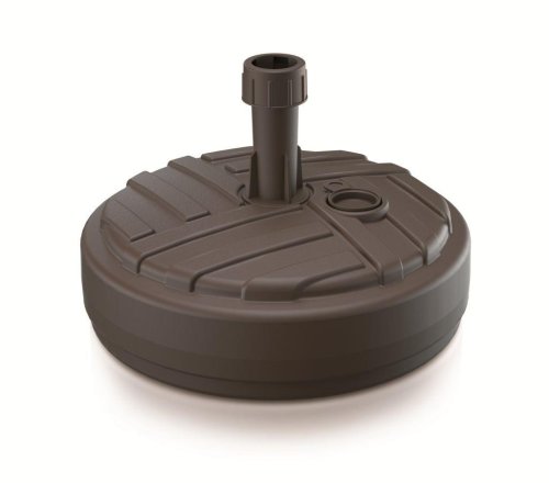 Kulatý plastový stojan na slunečník s efektem imitace dřevěných prken. Po naplnění vodou či pískem zajistí slunečníku stabilitu. Průměr: 39 cm, výška: 13 cm.