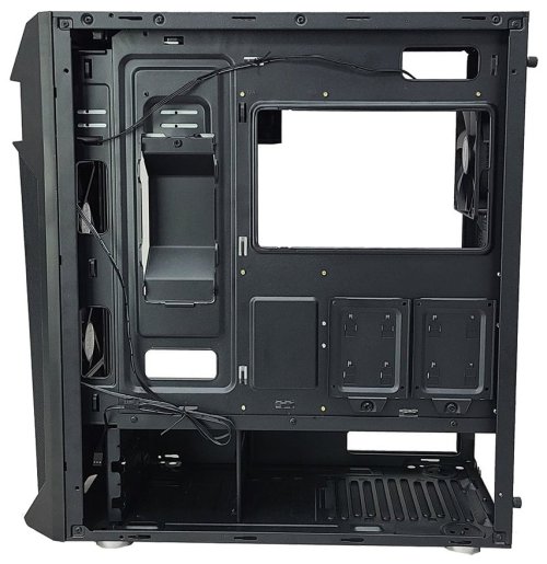 Kvalitní počítačová skříň formátu Middle Tower nabízí tři 2,5" pozice pro SSD disky a dvě 3,5" pozice pro pevné disky. Předinstalovány jsou tři 120 mm ventilátory. Na horním panelu se nachází dva porty USB 3.0, jeden port USB 2.0, sluchátkový výstup a audio vstup pro mikrofon. Ve skříni je dostatek prostoru pro chladič CPU do výšky až 163 mm a grafickou kartu o délce až 385 mm. Důmyslné řešení umožňuje pohodlné umístění až 280 mm dlouhého výměníku vodního chlazení na horní straně. Skříň je vybavena průhlednou bočnicí. Potěší také přítomnost prachových filtrů. Skříň je dodávána bez zdroje.