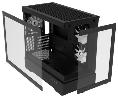 Elegantní počítačová skříň nabízí stylovou prosklenou bočnici i přední panel a prvotřídní kovovou konstrukci. Osazení komponentami je lehké díky intuitivnímu systému správy kabeláže, kabely tedy nikde zbytečně nepřekáží. Skříň je osazena třemi 120mm ventilátory s ARGB podsvícením. Potěší také možnost rozšíření o dalších 6 ventilátorů. Samozřejmostí jsou prachové filtry. Důmyslné řešení umožňuje pohodlné umístění až 360 mm dlouhého výměníku vodního chlazení na horní straně. Ve skříni je dostatek prostoru pro chladič CPU do výšky až 173 mm a grafickou kartu o délce až 420 mm. Na bočním panelu se nachází jeden port USB 3.0, jeden port USB-C a kombinovaný audio port pro sluchátka a mikrofon. Skříň je dodávána bez zdroje.