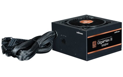 ZALMAN GigaMax III 650 W; Napájecí zdroj osazen tichým 120 mm ventilátorem. Účinnost zdroje splňuje certifikaci 80PLUS Bronze.