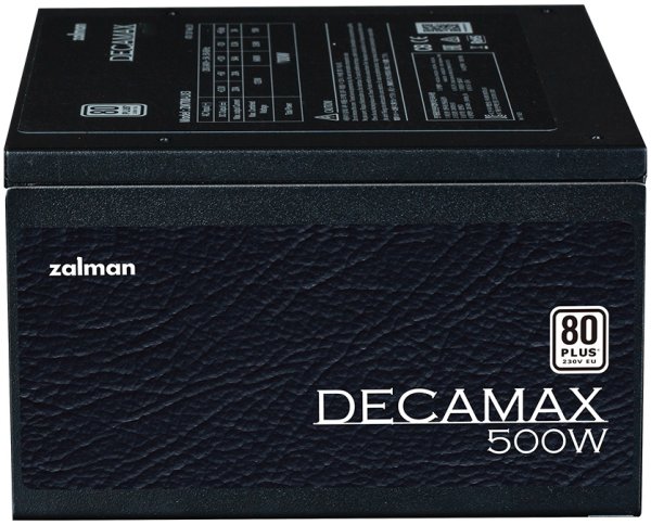 Napájecí zdroj o výkonu 500 W osazený tichým 120 mm velkým ventilátorem. Účinnost zdroje splňuje certifikaci 80PLUS Standard.