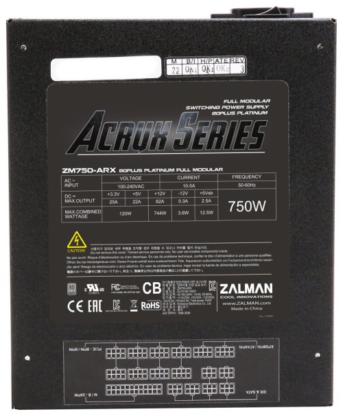 ZALMAN ZM750-ARX 750 W; Napájecí zdroj o výkonu 750 W je osazen tichým, 135 mm velkým ventilátorem.