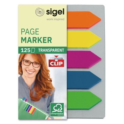 Záložky samol. SIGEL, tvar šipky, transp. s klipem