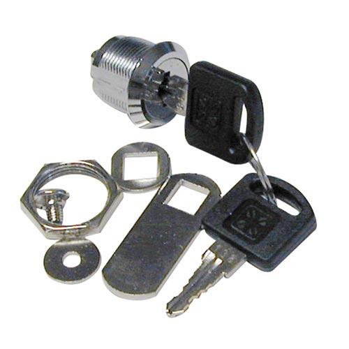 Tento typ zámku je velmi často používaný u kovových šatních skříněk a rozvaděčů k uzamykání dvířek. Montáž zámku nasunutím do vyfrézovaného či vyvrtaného otvoru připevněného přes podložku.