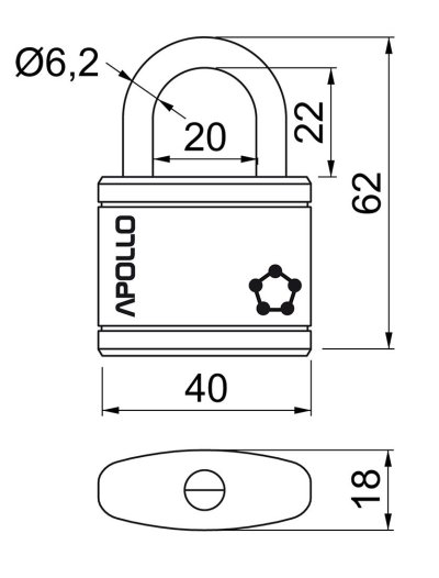 Zámek visací APOLLO 40 3 kl. ČRV.