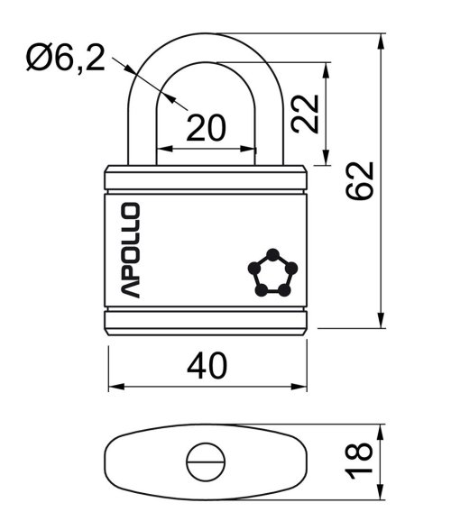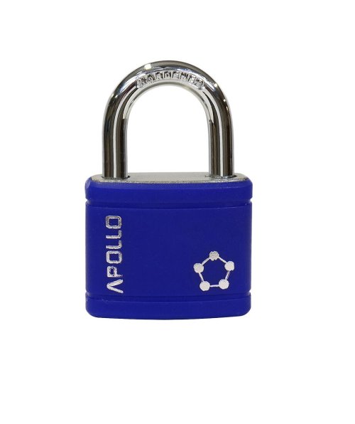 Ocelový visací zámek. Práškově lakované těleso zámku s plastovým krytem. Třmen zámku HARDENED, jištěný ve dvou bodech. Zamykání bez klíče – zatlačením třmenu. Vložka zámku s 5 odpruženými stavítky.