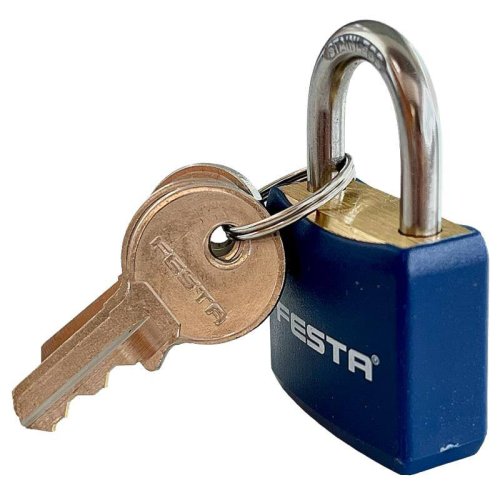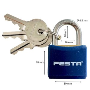 zámek visací s mosazným tělem a nerezovým obloukem mosazné tělo zámku je poplastované klíče 2 ks