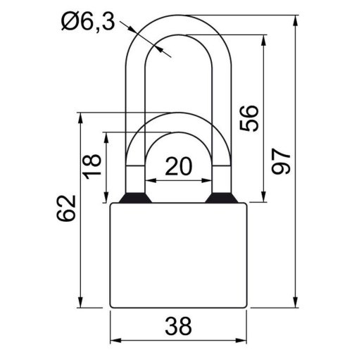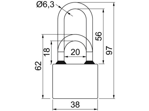 Klasický litinový zámek. Standardní nebo prodloužený (PL) třmen HARDENED, jištěný ve dvou bodech. Gumové kroužky chránící litinové těleso proti průniku vody. Zamykání bez klíče – zatlačením třmenu. Možnost společného uzávěru - „SU“. Vložka zámku s 5ti odpruženými stavítky. Povrchová úprava: modrý komaxit Hmotnost netto: 0,13 kg, PL 0,15 kg Balení vč. 3 ks klíčů.