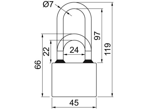 Klasický litinový zámek. Standardní nebo prodloužený (PL) třmen HARDENED, jištěný ve dvou bodech. Gumové kroužky chránící litinové těleso proti průniku vody. Zamykání bez klíče – zatlačením třmenu. Možnost společného uzávěru - „SU“. Vložka zámku s 5ti odpruženými stavítky. Povrchová úprava: modrý komaxit Hmotnost netto: 0,13 kg, PL 0,15 kg Balení vč. 3 ks klíčů.