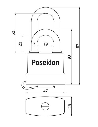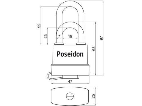 Zámek visací POSEIDON 40 prodloužený 3 kl. voděodolný s PH překrytem.