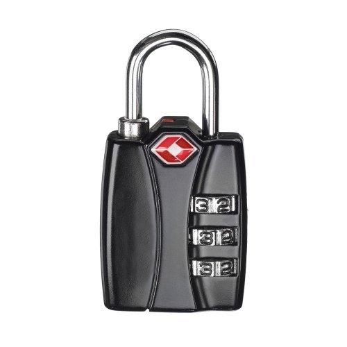 Černý bezpečnostní visací zámek na 3místný číselný kód vhodný pro cestování letadlem. Vybavený doplňkovým odemykáním TSA pro otevření při celní kontrole bez poškození zámku nebo zavazadla.
