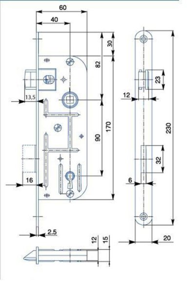 hloubka zadlabání: 60 mm rozteč: 90 mm povrchová úprava: zinek bílý pravolevý 2 klíče
