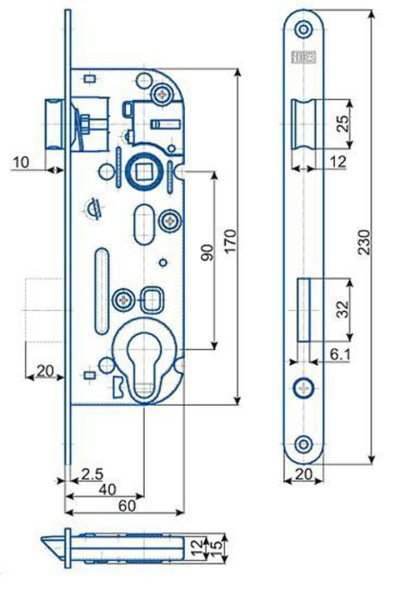 Zadlabací vložkový zámek 02-04 jednozápadový bez převodu s otvory pro dělené štíty je univerzální na pravé i levé dveře.