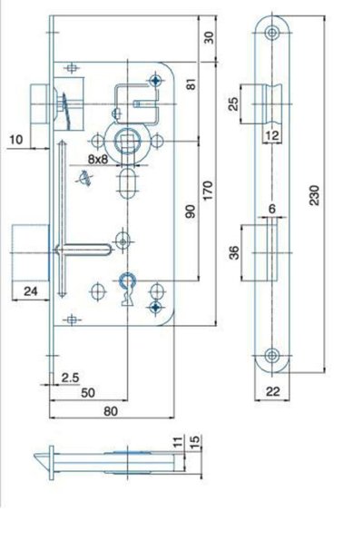 Zadlabací zámek obyčejný 536A dvouzápadový bez převodu je univerzální na pravé i levé dveře.