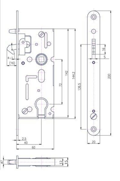 Zámek zadl. K106A - 72/60 P-L BÍ Zn jazýček vložkový.