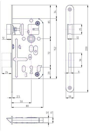 Zadlabací obyčejný zámek K134 dvouzápadový bez převodu s otvory pro dělené štítky je univerzální na pravé i levé dveře.