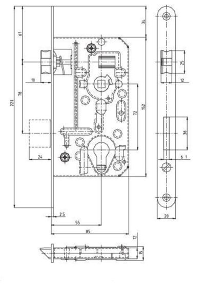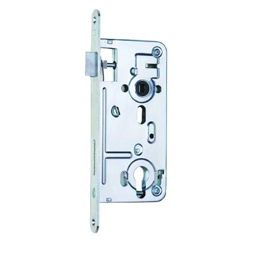 Zadlabací zámek určený pro cylindrickou vložku je jednozápadový, s převodem (střelka ovládaná klikou i klíčem) a s otvory pro dělené štítky.