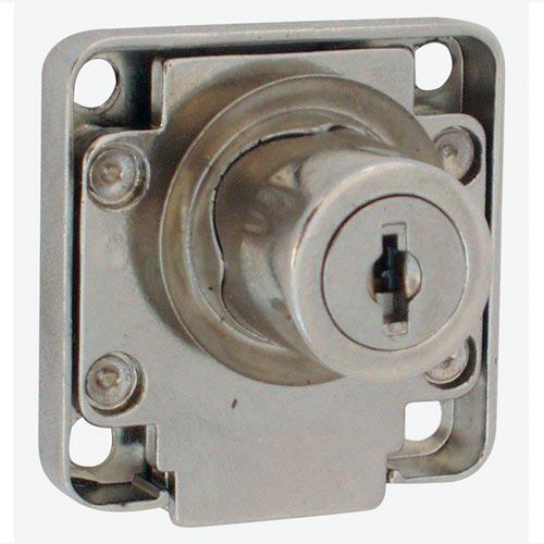 Poniklovaný zásuvkový zámek je určený na uzamčení zásuvek psacích stolů, skříněk a komod.