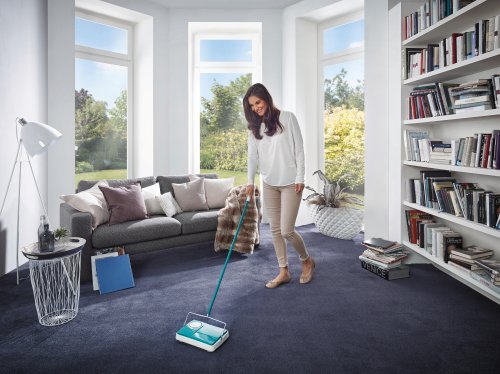 rychle zametá prach, špínu, vlasy, chlupy a drobné nečistoty z koberců