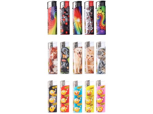 Zapalovač piezo abstrakt , smile , psi a kočky